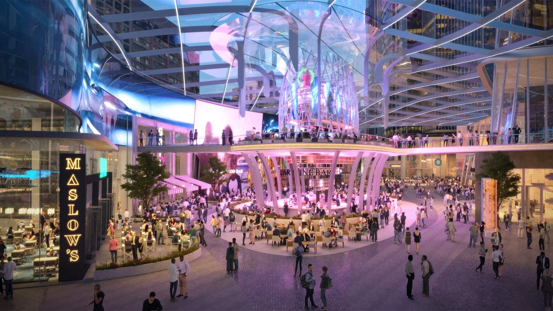 The proposed Urban Entertainment center creates a pedestrian destination that includes theaters, nightclubs, restaurants, hotels and a cinema complex designed around a series of outdoor and interior streets that are connected to transit and the existing neighborhood amenities.
